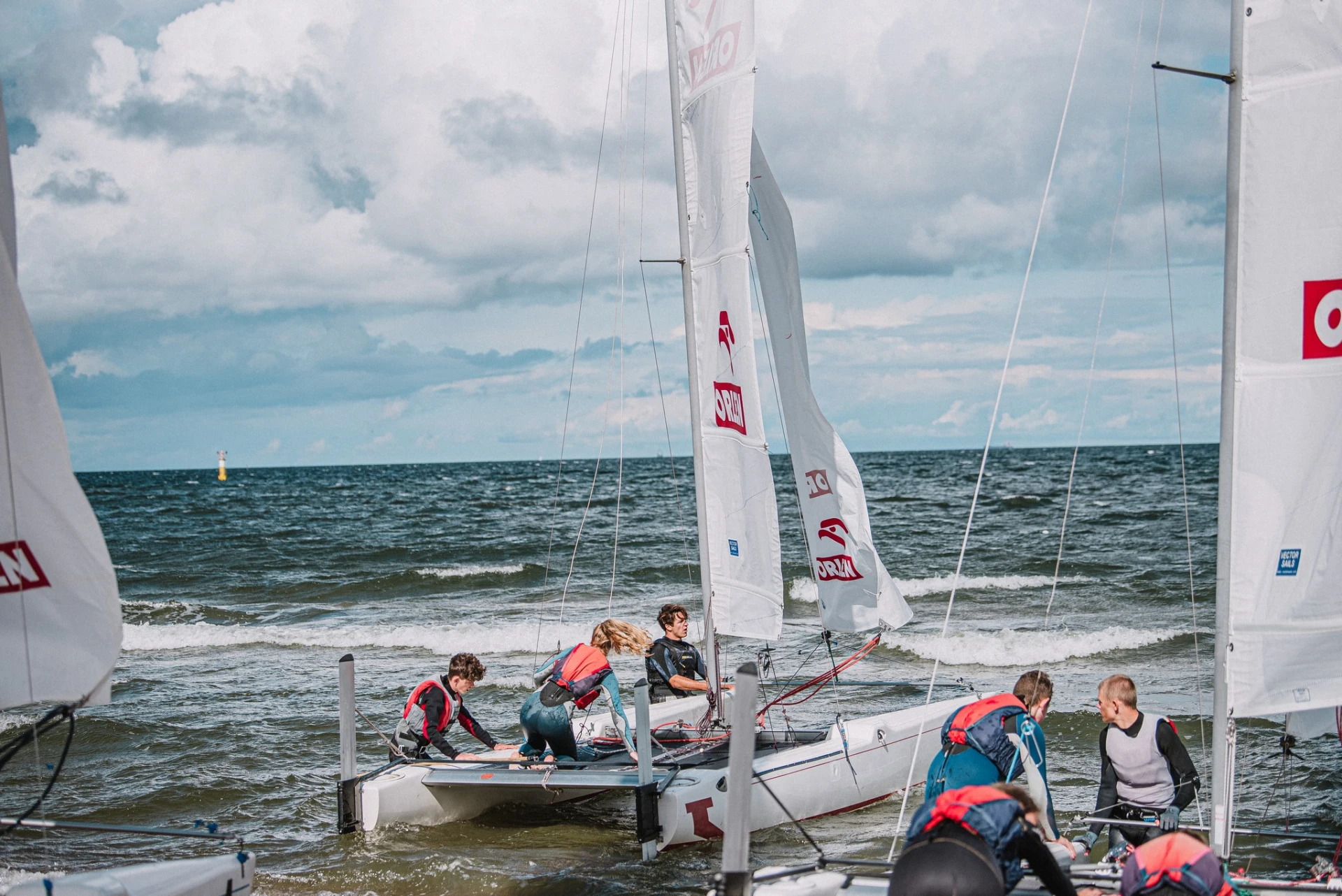 Dzieci miały okazję zgłębić z nami tajniki żeglarstwa. nasi sternicy oraz trenerzy podzielili się ogromem wiedzy teoretycznej, którą załoganci mogli wykorzystać pływając na katamaranach.